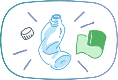 資源として生まれ変わらせるため、ペットボトルのキャップとラベルを外して分別する