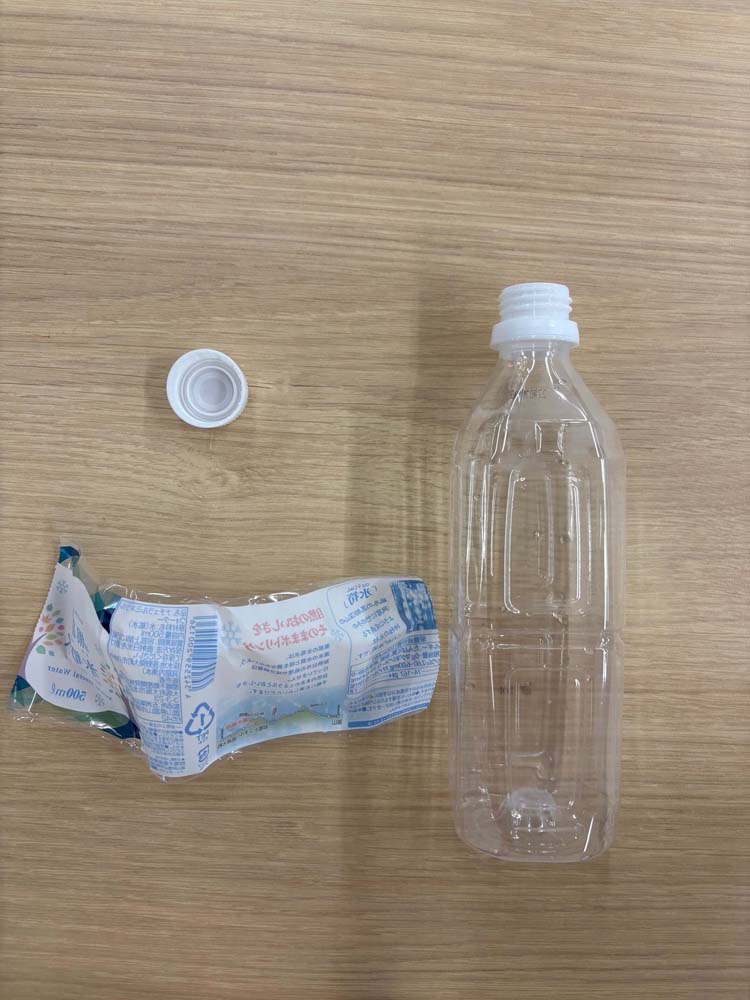 実際にペットボトルについているラベルを知り、ラベルの意味を深める