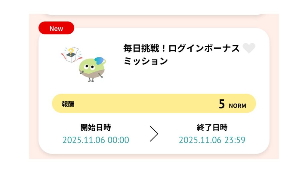 実施したミッションで獲得できるNORM(ポイント)はいくらなのか、気になりませんか👀