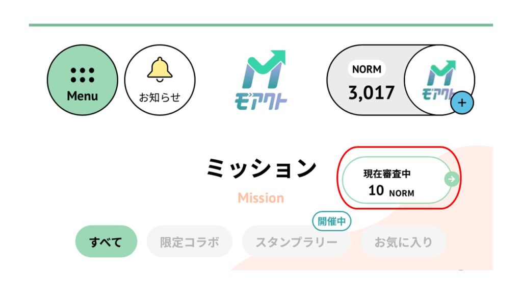 NORM付与までに、ミッション達成の審査が入るので、少し時間がかかってしまいますが、この審査中のNORM数を見つつ、楽しみに待っていてください😊