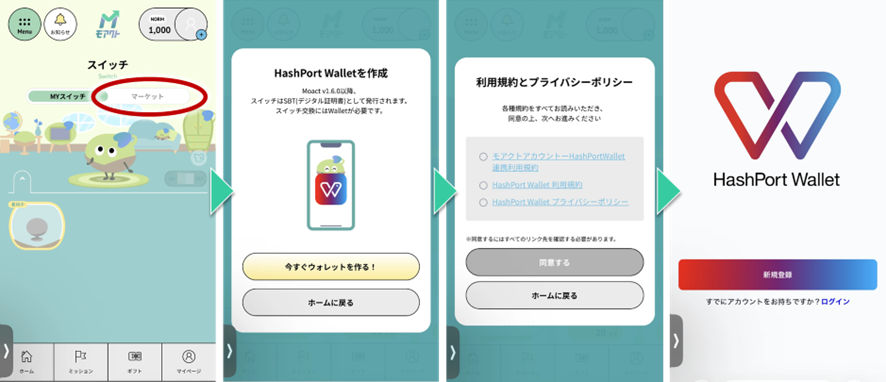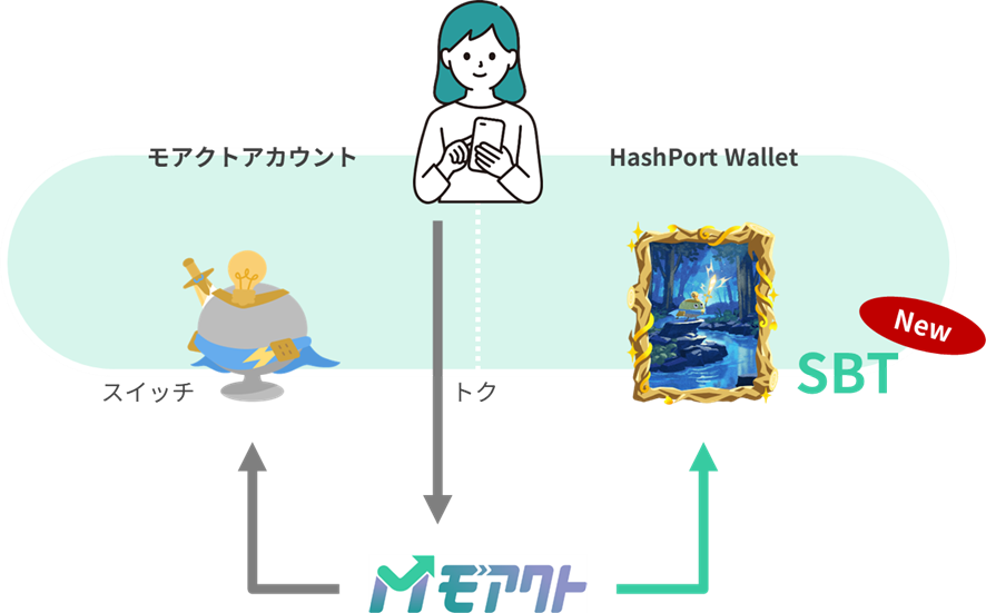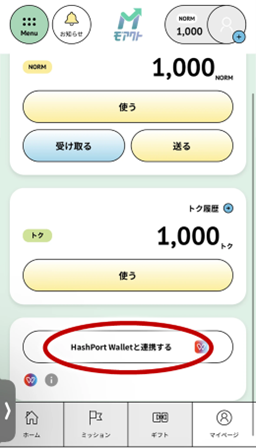 SBTを受け取るため、4月2日以降にスイッチ交換を行う場合、モアクトアカウントと「HashPort Wallet」の連携が必要です。